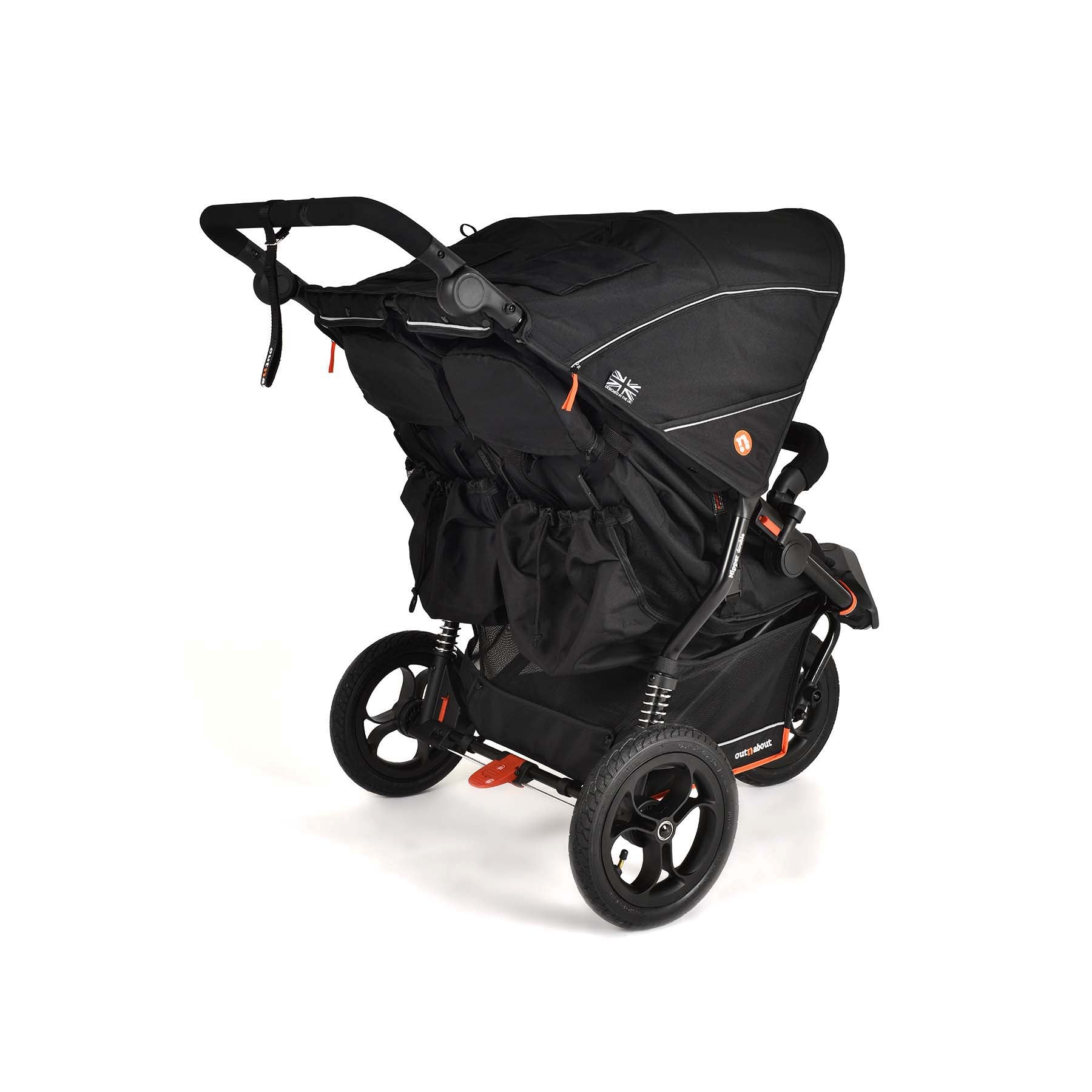 The Nipper Double V6 is our most advanced and versatile double pushchair to date – suitable from newborn to around 4 years old. Built with a durable design that’s made to last (and with access to spare parts when you need them), this all-terrain 3-wheel buggy has 12” air-filled tyres, rear suspension, a swivel-lock front wheel for stability on rough ground, and a lightweight aluminium frame that’s easy to handle. It seats two children (22kg capacity each) yet is just 71cm wide, so it fits through standard doorways with ease.